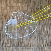 Customers rave about the unique dining experience at Dumpling Factory, where a high-tech ordering kiosk and robot delivery system enhance the efficiency of service. The atmosphere is lively and inviting, with trendy music playing in the background.